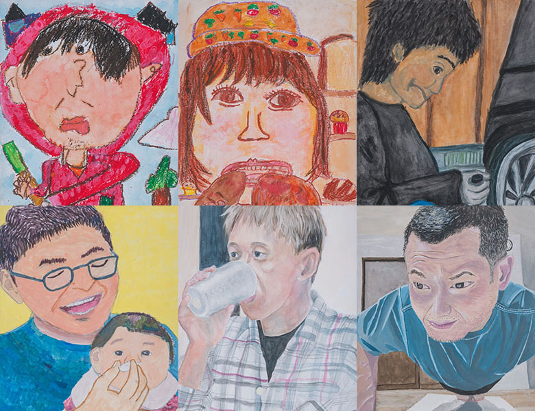 審査会では、時にはタイトルを確認して絵を見直したり、審査員で意見を交わし合ったりしながら、一枚一枚の作品を丁寧に慎重に見せていただきました。審査を進めていると、「お母さんの顔、もっと素敵に描いてよね。」「お父さん、動いたらダメだよ。」など、家族での会話の様子や絵を描いている皆さんの姿が思い浮かんできました。
