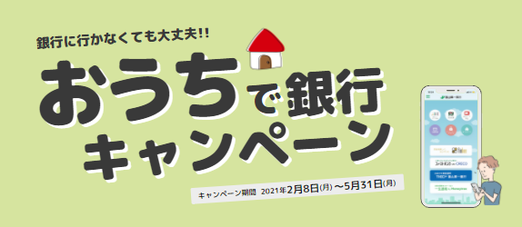 2021年2月8日(月)より「おうちで銀行キャンペーン」を開始しますのでご案内いたします。
