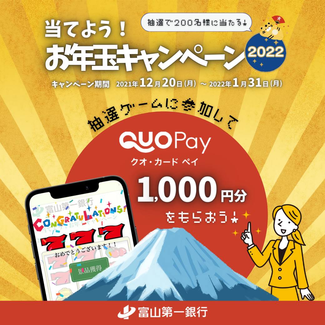 抽選ゲームに参加してQUOカードPay1,000円分が当たる!「当てよう!お年玉キャンペーン2022」実施のお知らせ