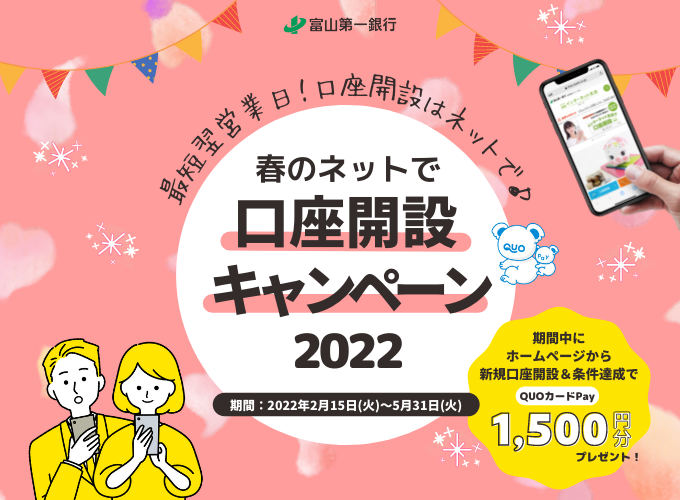 QUOカードPay1,500円分が当たる!「春のネットで口座開設キャンペーン2022」実施のお知らせ