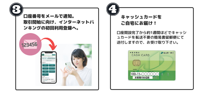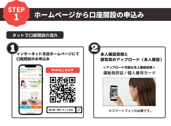 ※ホームページからの口座開設は通帳を発行しない「通帳レス口座」での開設となります。