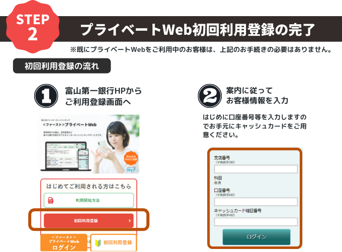 - 既にプライベートWebをご利用されているお客様は初回利用登録の必要はありません。