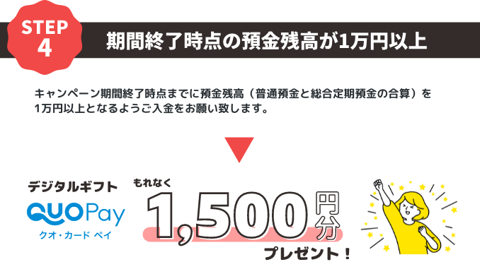 - 「QUOカードPay」送付時点で対象口座やプライベートWebが解約されている場合、キャンペーンの対象外となります。