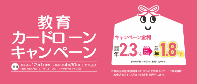 2022年12月1日(木)よりファーストバンクの「教育カードローン」キャンペーンを実施いたします。