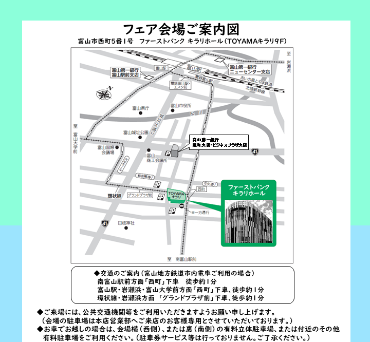 ファーストバンクキラリホール(TOYAMAキラリ9F) 富山県富山市西町5-1 |