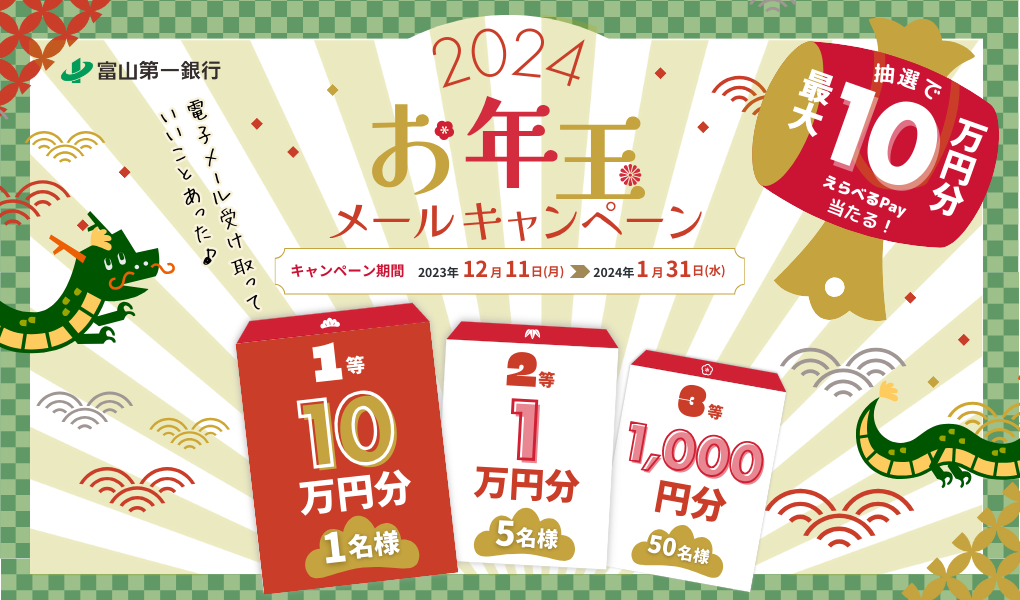 抽選で最大10万円分のえらべるPay当たる!「お年玉メールキャンペーン2024」実施のお知らせ