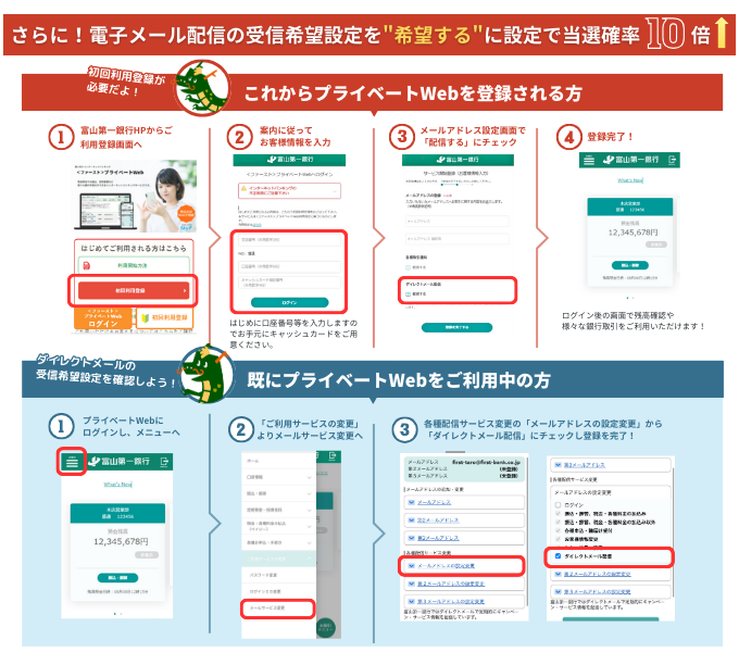- 抽選ゲームに参加できるメールは、2024年2月上旬頃にプライベートWebにご登録いただいているメールアドレス宛に送付予定です。