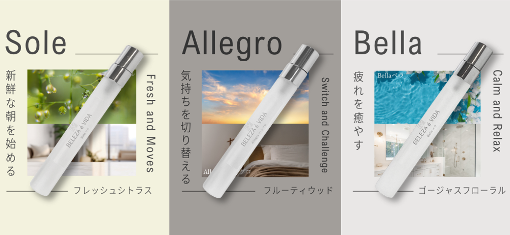 このことは美容にも当てはまり、自分の肌や髪、爪がきれいに整って嬉しいという気持ちは自律神経を整える後押しをすると考えられています。ベレーザ・エ・ヴィーダではお客様ごとの悩みに応じたコスメ商品の提案販売を行っており「香りの力」と「美容の力」を合わせたより豊かなビュティーライフ提案を実現させる商品として期待しています。