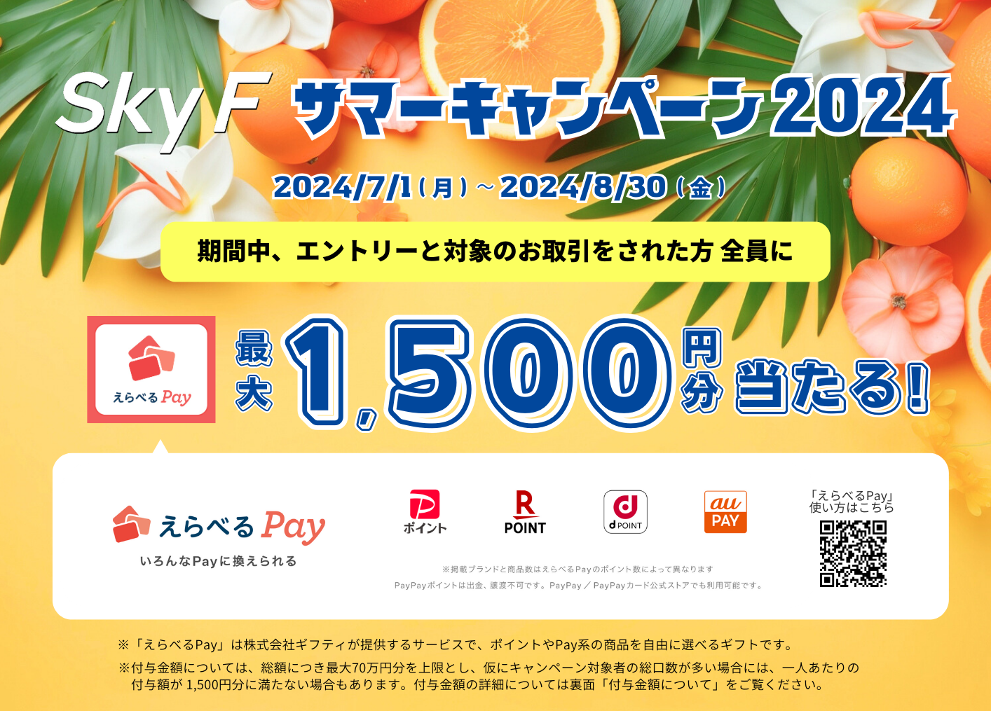 最大1,500円分のえらべるPayが当たる!SkyFサマーキャンペーン2024の開催について