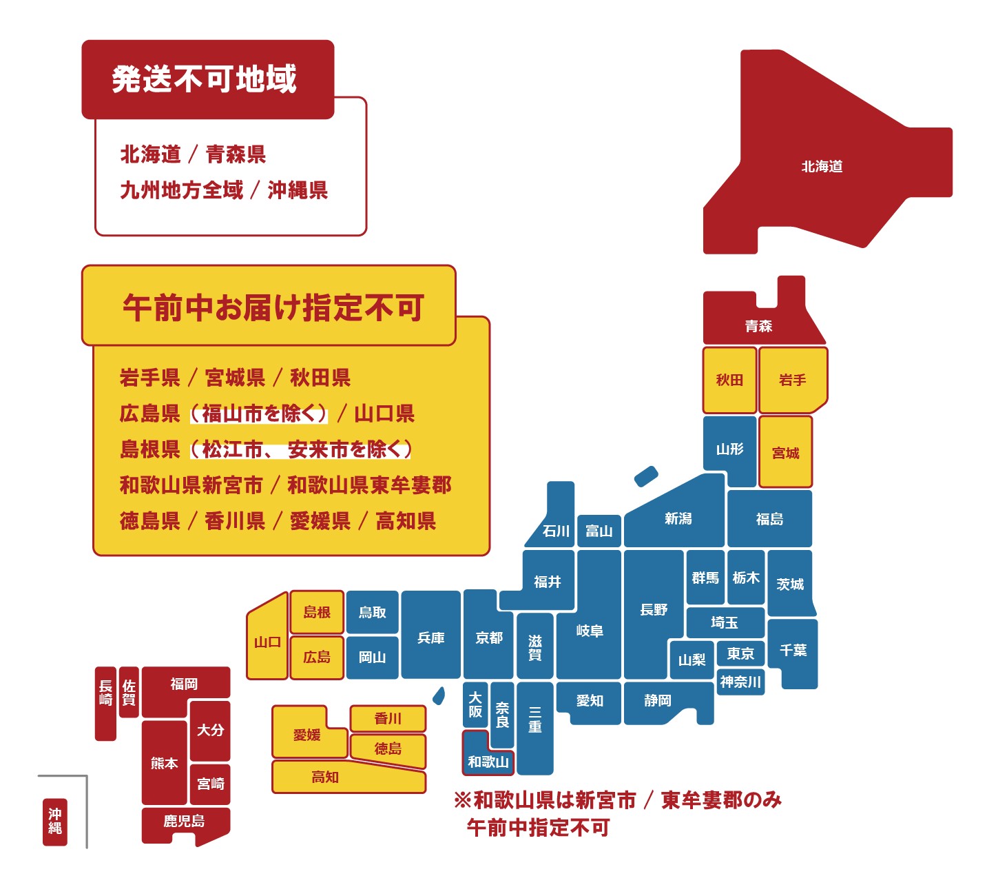 ■午前中指定不可地域■ 岩手県/宮城県/秋田県/広島県(福山市を除く)/山口県/島根県(松江市、安来市を除く)/和歌山県新宮市/和歌山県東牟婁郡/徳島県/香川県/愛媛県/高知県