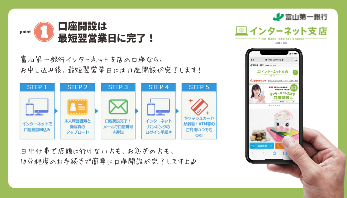 ※ホームページからの口座開設の場合、通帳を発行しない「通帳レス口座」での開設となります。