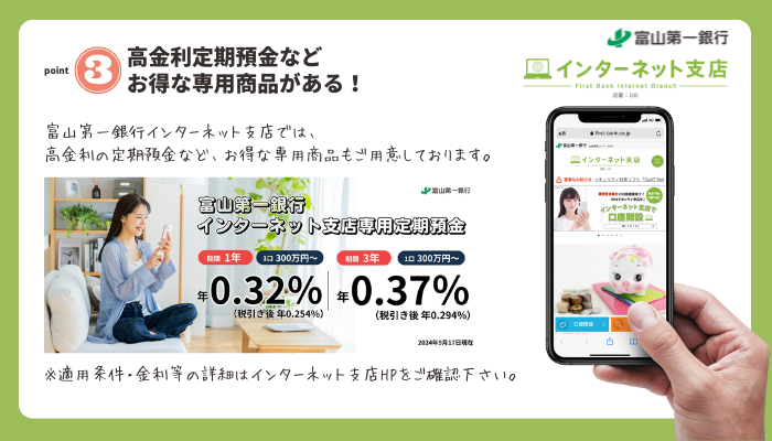 point3:お得な定期預金など、インターネット支店専用商品がある!