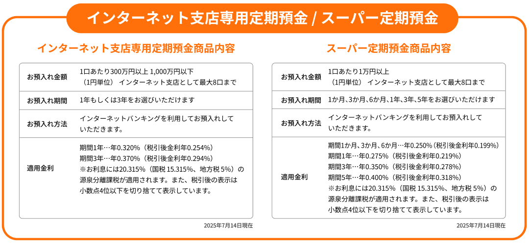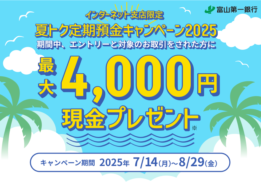 「インターネット支店限定 夏トク定期預金キャンペーン2025」実施のご案内