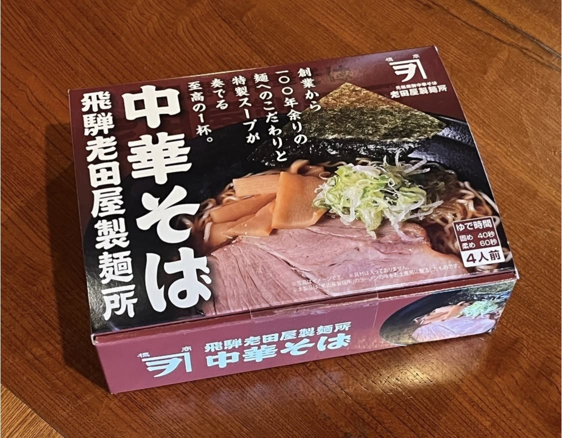 創業1901年、製麺一筋に歩んできた老田屋の麺は「大洞湧水群」と呼ばれる湧き水を3種類のフィルターにかけて濾過し、主原料の小麦粉を遠赤外線処理された袋で保管し、「おいしさを持続させた上、日持ちさせる」を信条に、余分な添加物を一切使用しておりません。また、常温でも約2ヶ月の賞味期限があり、すべてのお客様に安心・安全に食べていただくことができる、小麦の香りの立つ、飛騨中華そばに使用されるちぢれ細麺で、県の特産品指定『飛騨美濃すぐれもの』にも認定されました。