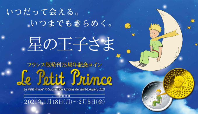 1月18日より販売を開始しました「星の王子さま フランス版発刊75周年記念コイン」につきまして、好評につき1月26日(火)のご注文をもちまして販売を終了いたします。