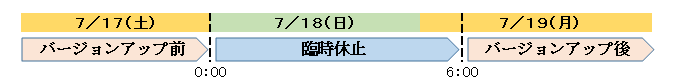 なお、バージョンアップ作業のため、2021年7月18日(日)午前0時~7月19日(月)午前6時迄は臨時休止となり、サービスはご利用いただけません。