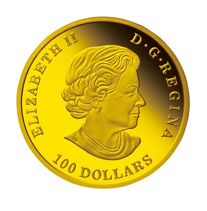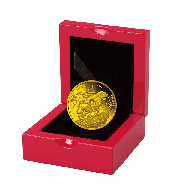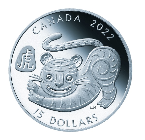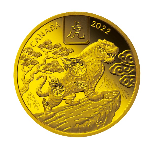 【表面】 カナダ発行の硬貨に共通の女王エリザベス2世の気品溢れる肖像が描かれています。「D.G.REGINA」はラテン語で「神の恩寵による女王」を意味します。 【裏面】 崖の突端に立ち、遠くを見つめる虎を大きく描いています。背景には、崇高さや長寿を象徴するとされる「松の木」や、幸運を巻き取るという願いが込められている「渦巻く雲」、上部には「虎」の漢字などが刻まれています。デザインを手がけたのは、カナダ人アーティストのアリーズ・チェン氏。 |