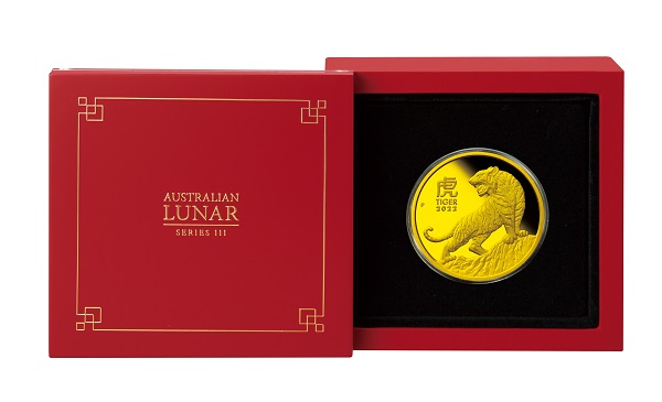 【表面】 オーストラリア発行の硬貨に共通の女王エリザベス2世の肖像が描かれています。2019年から採用されている6番目のデザインは、アーティストのジョディ・クラーク氏によるもので、穏やかな微笑をたたえた表情が特徴的です。コインの重量や純度、額面なども刻まれています。 【裏面】 岩山の上に立ち、牙をむきながら吠える虎の猛々しい姿を大きく描いたシンプルなデザイン。虎のシンボルとも言えるシマ模様や毛並み、岩肌などが緻密な刻印技術でリアルに表現されています。漢字の「虎」や「TIGER2022」 、パース造幣局で鋳造されたことを示すミントマーク「P」も刻印されています。 |