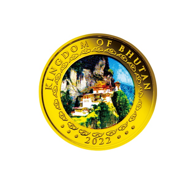 【表面】 ヒマラヤ山脈に囲まれた大自然の動植物や雲と、活発に動き回る虎をグラフィカルに表現したデザイン。周りには英語で「YEAR OF THE TIGER」、額面などが刻まれています。“幸せの国”として知られるブータン王国の神秘的な魅力を美しいコインの輝きとともに堪能することができます。 【裏面】 同国の玄関口の国際空港があるパロ市の溪谷にある「タクツァン僧院」が、鮮やかなカラーで描かれています。チベット仏教信仰の聖地でもあるこの僧院は、標高約3000メートルの切り立った岩壁にあり、別名「虎の巣(Tiger's Nest)」とも呼ばれています。 |