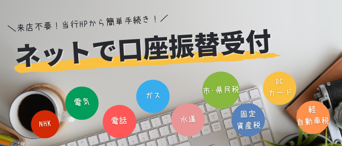 当行では2021年11月25日(木)より、ネットで口座振替における市税等の各種税金について、取扱い市町村を拡大いたします。