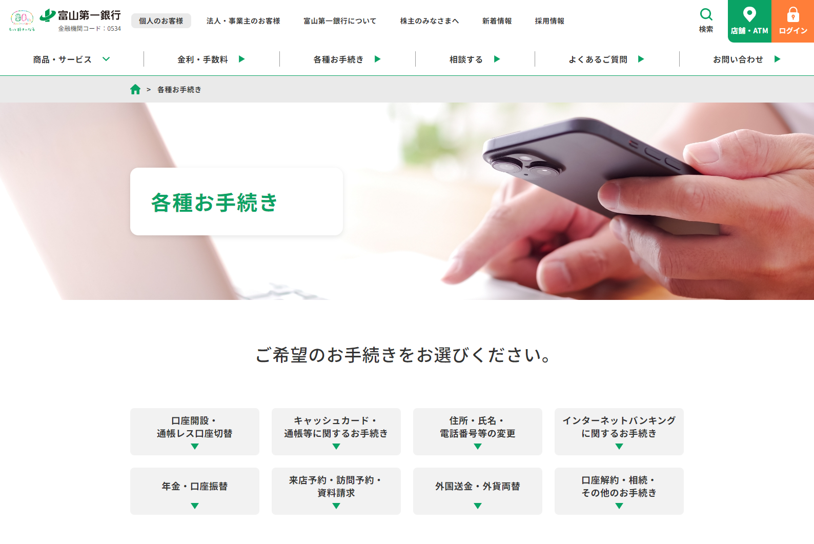 「各種お手続き」のカテゴリを新設し、ニーズの高いお手続きコンテンツを拡充します。