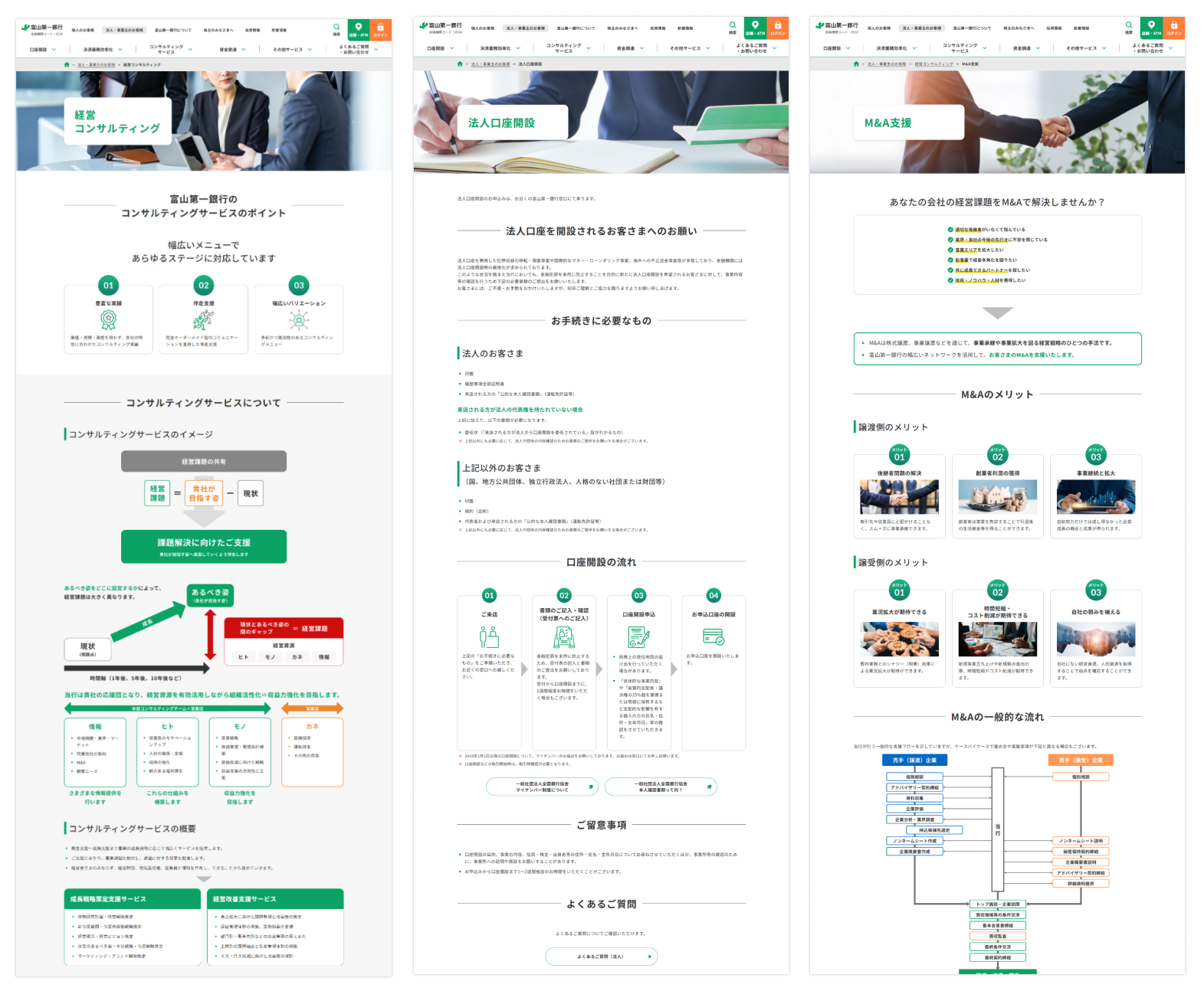 「法人・事業主のお客様」ページコンテンツを見直し、情報量を充実させるとともに、デザインやレイアウトを改善しました。これによりお客さまが知りたい情報が探しやすく、より分かりやすい構成となっております。