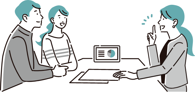 アプリやWebもいいけれど、困ったときには店舗で相談できて安⼼。お⼦さまの成⻑にあわせて、⽣活費や教育費も増加していきます。⽇々の家計から将来の資産形成まで、ライフステージにあわせたマネープランをご案内します。