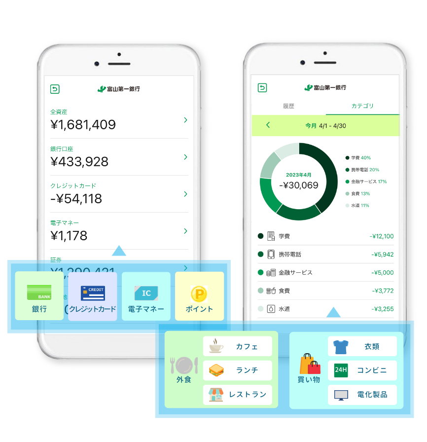 - 「一生通帳by Moneytree」および「Moneytree」のご利用により生じた損害について、富山第一銀行は一切責任を負いかねます。お客様ご自身の判断においてご利用ください。