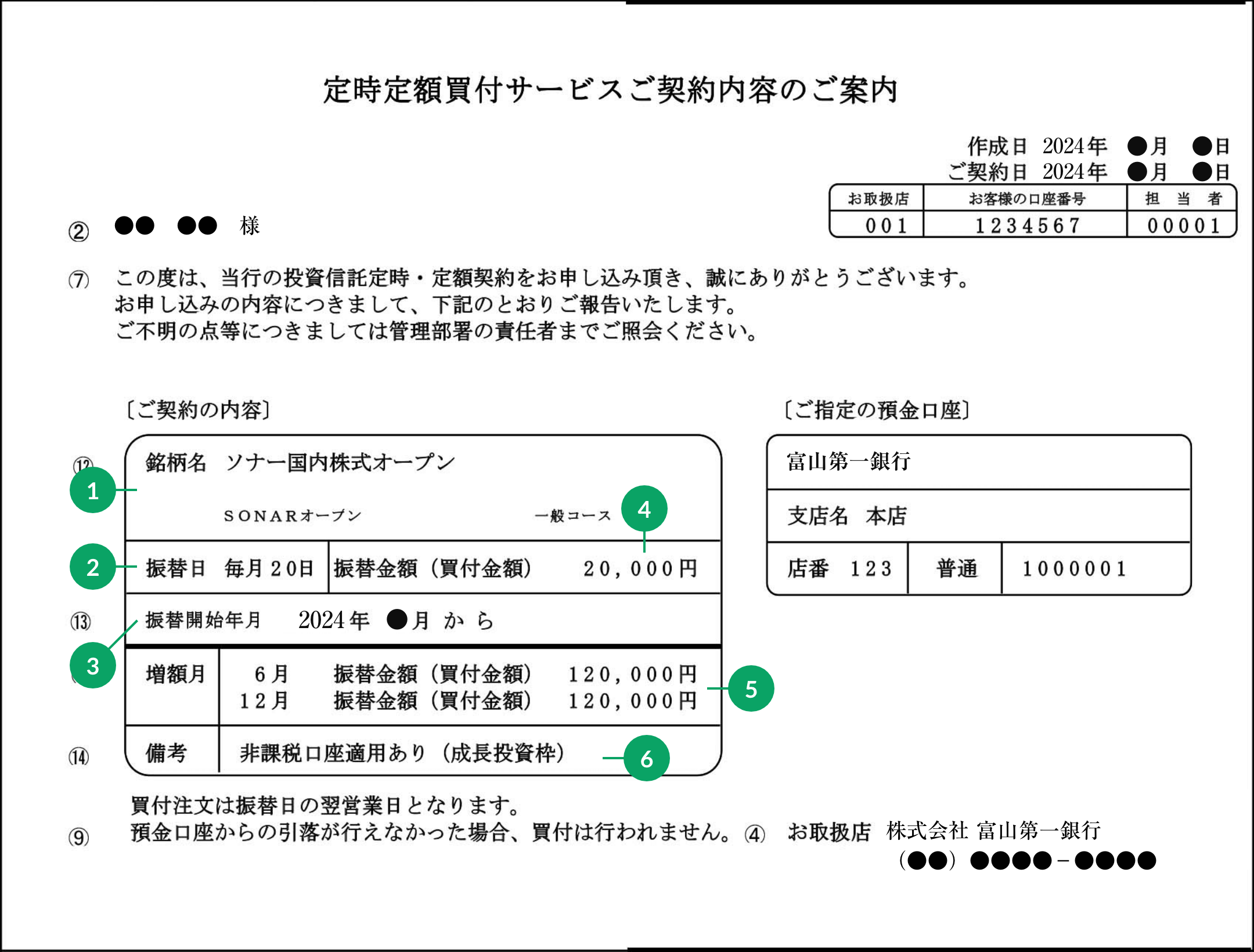 増額月を設定された場合、増額月と増額月の振替金額(買付金額)を表示します。 - 備考