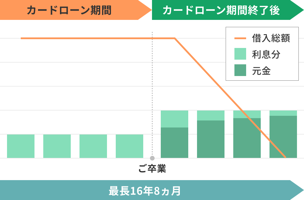 卒業後(カードローン期間終了後)は、利息と元金部分をご返済いただきます。